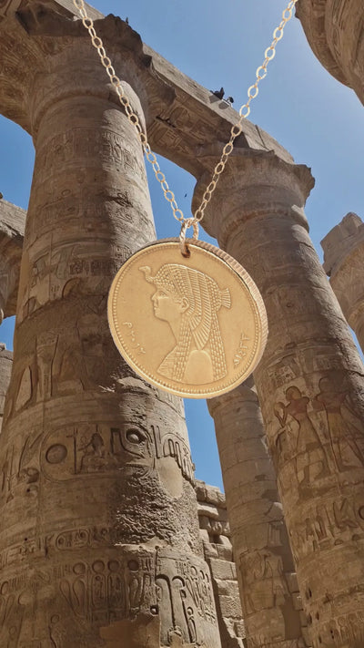 Each necklace is crafted from an authentic Egyptian coin, polished and plated in 24k gold for lasting radiance. With coins no longer in circulation, every piece is a rare keepsake — carrying history, story, and timeless elegance.