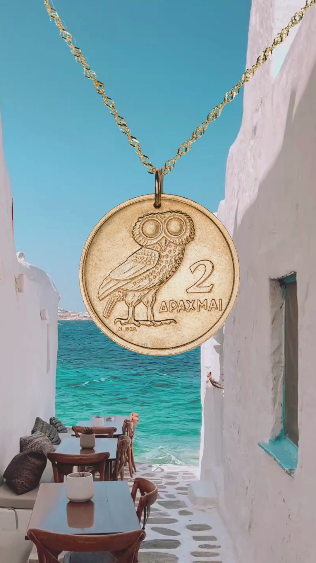 Each necklace is crafted from an authentic Greek coin, polished and plated in 18k gold for lasting brilliance. With coins no longer in circulation, every piece is a rare memento — carrying history, story, and timeless elegance.